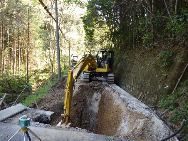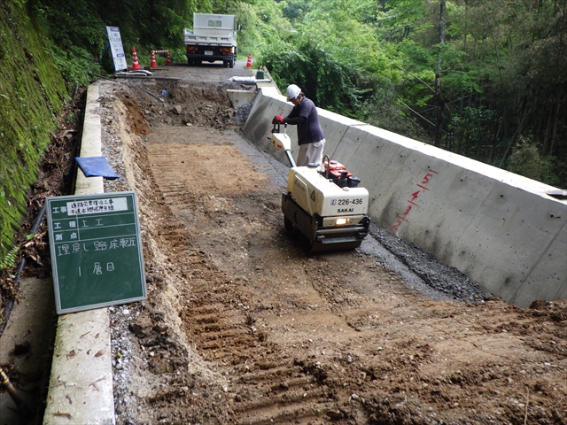 崩れた路肩が復旧できるまで 施工悩み相談 X Facebook はてブ LINE Pinterest コピー 2026.01.13 崩れた箇所に重力式擁壁を設置するため機械で土砂を所定の位置まで掘り下げます 床掘作業が完了しました 型枠が設置できたので、生コンを投入します業界用語で生コン打設といいます 型枠の中はこんな感じ 生コンが所定の強度になったので、型枠を外して、埋め戻します30cmおきに転圧します。上部(路床)1mは20cmおきに転圧します。 埋め戻しができたら、切断された水道管を復旧します 舗装して完成です 完成しました。2ヶ月かかりました。